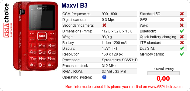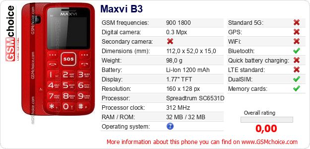 Do you have your website? Do you want to insert information about basic phone data of Maxvi B3 somewhere? It is very easy. You can download the picture, or copy and paste the code below on the page:Pasting this code will display the following image: