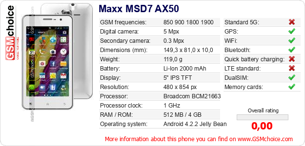 Do you have your website? Do you want to insert information about basic phone data of Maxx MSD7 AX50 somewhere? It is very easy. You can download the picture, or copy and paste the code below on the page:Pasting this code will display the following image: