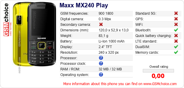 Do you have your website? Do you want to insert information about basic phone data of Maxx MX240 Play somewhere? It is very easy. You can download the picture, or copy and paste the code below on the page:Pasting this code will display the following image: