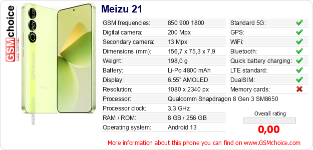 Do you have your website? Do you want to insert information about basic phone data of Meizu 21 somewhere? It is very easy. You can download the picture, or copy and paste the code below on the page:Pasting this code will display the following image: