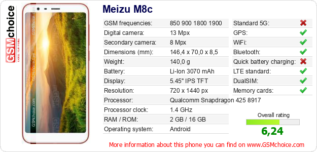 Do you have your website? Do you want to insert information about basic phone data of Meizu M8c somewhere? It is very easy. You can download the picture, or copy and paste the code below on the page:Pasting this code will display the following image: