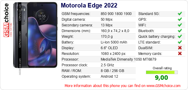 Do you have your website? Do you want to insert information about basic phone data of Motorola Edge 2022 somewhere? It is very easy. You can download the picture, or copy and paste the code below on the page:Pasting this code will display the following image: