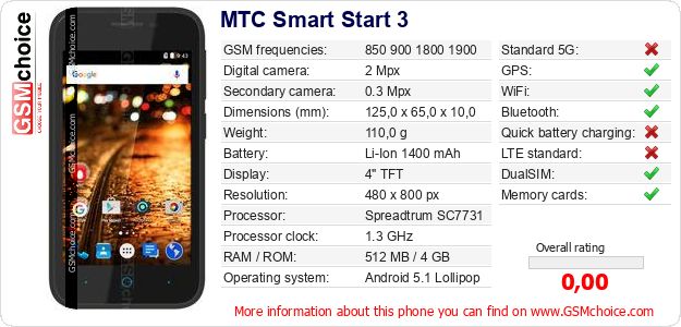 Do you have your website? Do you want to insert information about basic phone data of MTC Smart Start 3 somewhere? It is very easy. You can download the picture, or copy and paste the code below on the page:Pasting this code will display the following image: