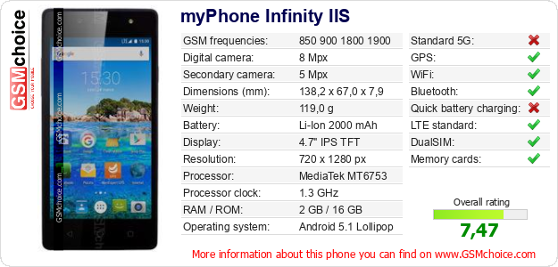 Do you have your website? Do you want to insert information about basic phone data of myPhone Infinity IIS somewhere? It is very easy. You can download the picture, or copy and paste the code below on the page:Pasting this code will display the following image:
