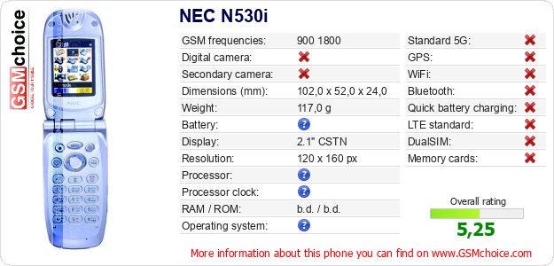Do you have your website? Do you want to insert information about basic phone data of NEC N530i somewhere? It is very easy. You can download the picture, or copy and paste the code below on the page:Pasting this code will display the following image: