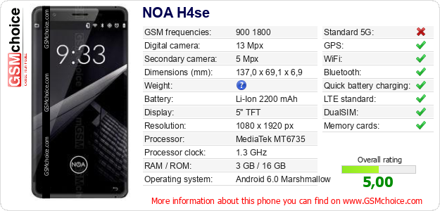 Do you have your website? Do you want to insert information about basic phone data of NOA H4se somewhere? It is very easy. You can download the picture, or copy and paste the code below on the page:Pasting this code will display the following image: