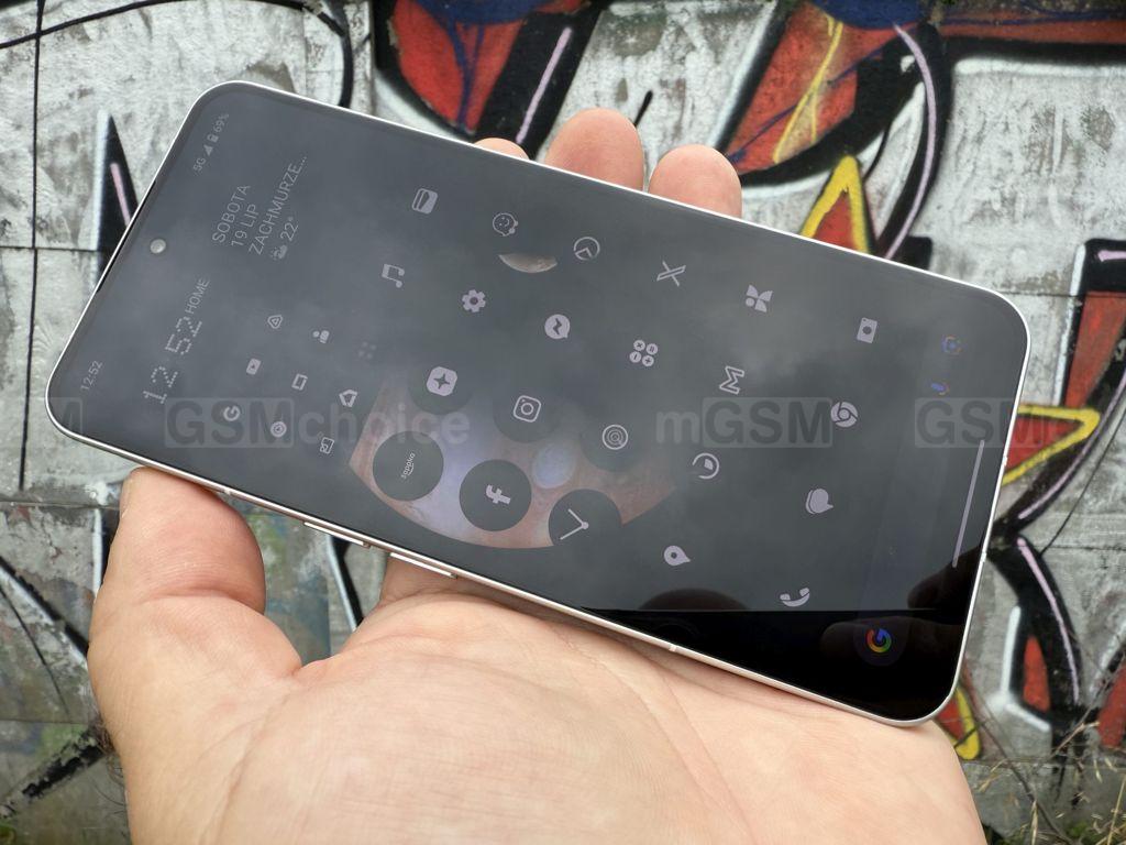 The display is a 6.7-inch AMOLED matrix with a resolution of 1.2K, protected by Gorilla Glass 7. The screen is very bright, supports HDR content, and provides high-quality images on the screen. It has narrow and symmetrical bezels, making it look impressive and performing well even on sunny days. The wide field of view on the screen allows you to capture more details when using the device. White balance adjustment options, a dark mode, and a refresh rate of up to 120 Hz are available (with the option to limit it to 60 Hz). The Always-on Display is functional and allows for the placement of widgets, such as a flashlight button. Colours can be customized. In the default mode, they are vibrant, saturated, and pleasing to the eye.