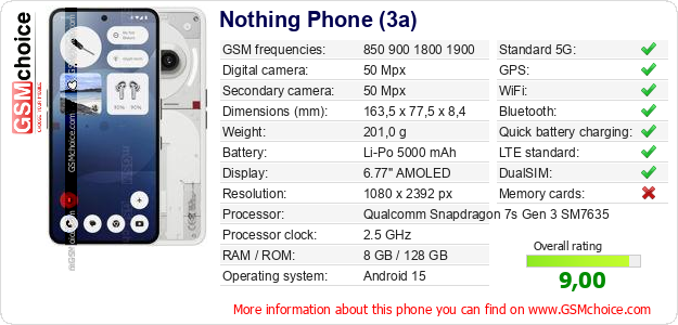 Do you have your website? Do you want to insert information about basic phone data of Nothing Phone (3a) somewhere? It is very easy. You can download the picture, or copy and paste the code below on the page:Pasting this code will display the following image: