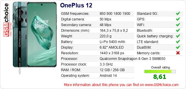 Do you have your website? Do you want to insert information about basic phone data of OnePlus 12 somewhere? It is very easy. You can download the picture, or copy and paste the code below on the page:Pasting this code will display the following image: