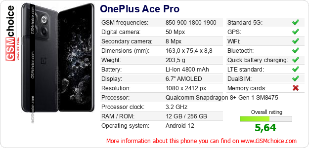 Do you have your website? Do you want to insert information about basic phone data of OnePlus Ace Pro somewhere? It is very easy. You can download the picture, or copy and paste the code below on the page:Pasting this code will display the following image: