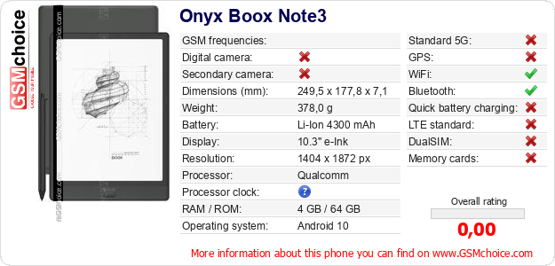 Do you have your website? Do you want to insert information about basic phone data of Onyx Boox Note3 somewhere? It is very easy. You can download the picture, or copy and paste the code below on the page:Pasting this code will display the following image:
