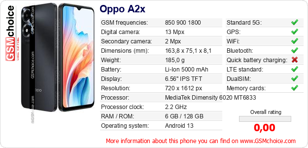 Do you have your website? Do you want to insert information about basic phone data of Oppo A2x somewhere? It is very easy. You can download the picture, or copy and paste the code below on the page:Pasting this code will display the following image: