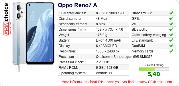 Do you have your website? Do you want to insert information about basic phone data of Oppo Reno7 A somewhere? It is very easy. You can download the picture, or copy and paste the code below on the page:Pasting this code will display the following image: