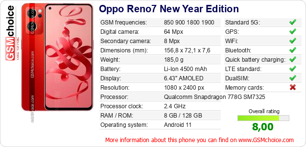 Do you have your website? Do you want to insert information about basic phone data of Oppo Reno7 New Year Edition somewhere? It is very easy. You can download the picture, or copy and paste the code below on the page:Pasting this code will display the following image:
