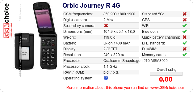 Do you have your website? Do you want to insert information about basic phone data of Orbic Journey R 4G somewhere? It is very easy. You can download the picture, or copy and paste the code below on the page:Pasting this code will display the following image: