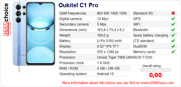Do you have your website? Do you want to insert information about basic phone data of Oukitel C1 Pro somewhere? It is very easy. You can download the picture, or copy and paste the code below on the page:Pasting this code will display the following image: