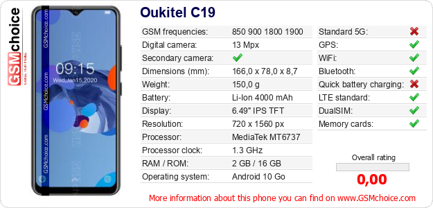 Do you have your website? Do you want to insert information about basic phone data of Oukitel C19 somewhere? It is very easy. You can download the picture, or copy and paste the code below on the page:Pasting this code will display the following image: