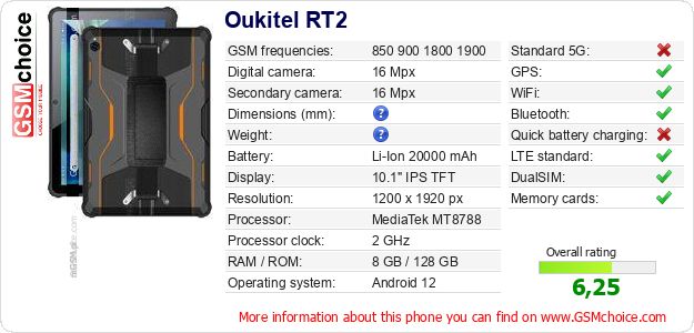 Do you have your website? Do you want to insert information about basic phone data of Oukitel RT2 somewhere? It is very easy. You can download the picture, or copy and paste the code below on the page:Pasting this code will display the following image: