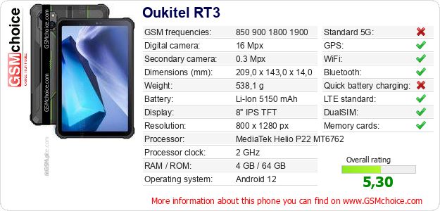 Do you have your website? Do you want to insert information about basic phone data of Oukitel RT3 somewhere? It is very easy. You can download the picture, or copy and paste the code below on the page:Pasting this code will display the following image: