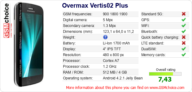 Do you have your website? Do you want to insert information about basic phone data of Overmax Vertis02 Plus somewhere? It is very easy. You can download the picture, or copy and paste the code below on the page:Pasting this code will display the following image: