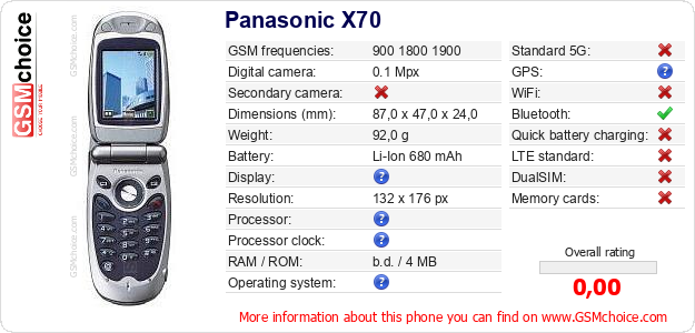 Do you have your website? Do you want to insert information about basic phone data of Panasonic X70 somewhere? It is very easy. You can download the picture, or copy and paste the code below on the page:Pasting this code will display the following image: