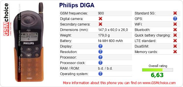 Do you have your website? Do you want to insert information about basic phone data of Philips DIGA somewhere? It is very easy. You can download the picture, or copy and paste the code below on the page:Pasting this code will display the following image: