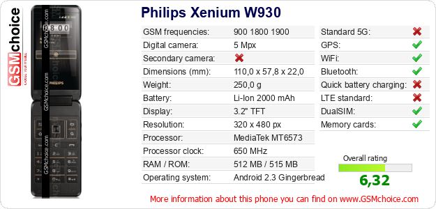 Do you have your website? Do you want to insert information about basic phone data of Philips Xenium W930 somewhere? It is very easy. You can download the picture, or copy and paste the code below on the page:Pasting this code will display the following image: