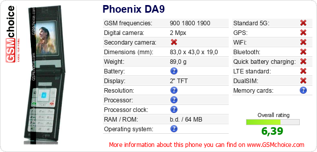 Do you have your website? Do you want to insert information about basic phone data of Phoenix DA9 somewhere? It is very easy. You can download the picture, or copy and paste the code below on the page:Pasting this code will display the following image: