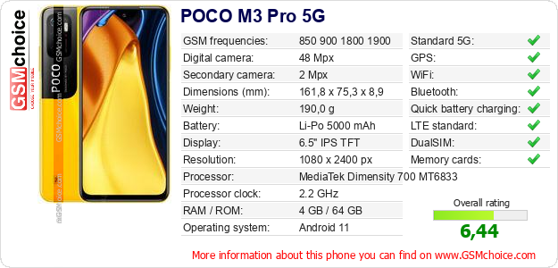 Do you have your website? Do you want to insert information about basic phone data of POCO M3 Pro 5G somewhere? It is very easy. You can download the picture, or copy and paste the code below on the page:Pasting this code will display the following image: