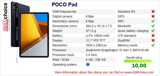 Do you have your website? Do you want to insert information about basic phone data of POCO Pad somewhere? It is very easy. You can download the picture, or copy and paste the code below on the page:Pasting this code will display the following image: