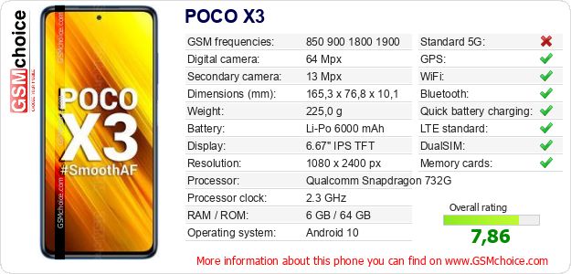 Do you have your website? Do you want to insert information about basic phone data of POCO X3 somewhere? It is very easy. You can download the picture, or copy and paste the code below on the page:Pasting this code will display the following image: