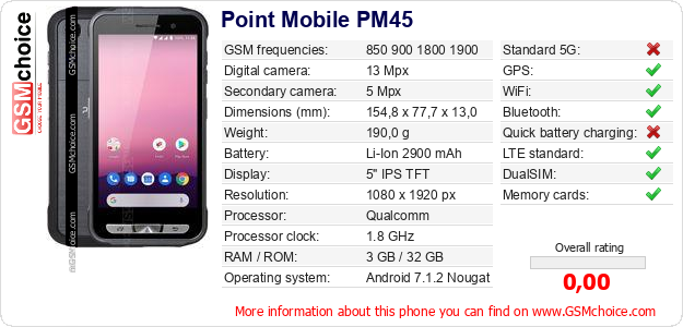 Do you have your website? Do you want to insert information about basic phone data of Point Mobile PM45 somewhere? It is very easy. You can download the picture, or copy and paste the code below on the page:Pasting this code will display the following image: