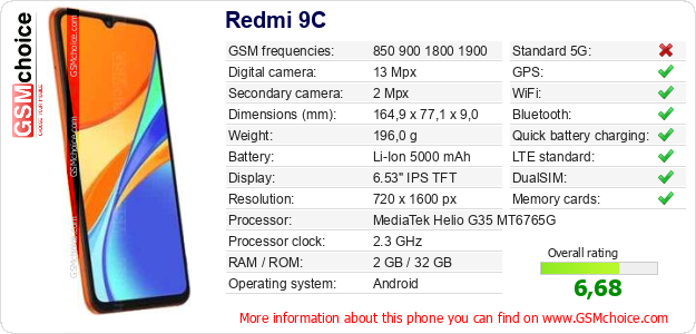 Do you have your website? Do you want to insert information about basic phone data of Redmi 9C somewhere? It is very easy. You can download the picture, or copy and paste the code below on the page:Pasting this code will display the following image: