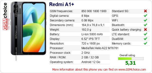 Do you have your website? Do you want to insert information about basic phone data of Redmi A1+ somewhere? It is very easy. You can download the picture, or copy and paste the code below on the page:Pasting this code will display the following image: