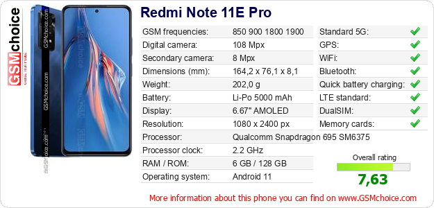 Do you have your website? Do you want to insert information about basic phone data of Redmi Note 11E Pro somewhere? It is very easy. You can download the picture, or copy and paste the code below on the page:Pasting this code will display the following image: