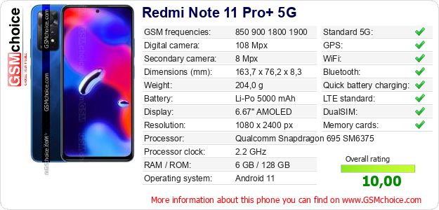 Do you have your website? Do you want to insert information about basic phone data of Redmi Note 11 Pro+ 5G somewhere? It is very easy. You can download the picture, or copy and paste the code below on the page:Pasting this code will display the following image: