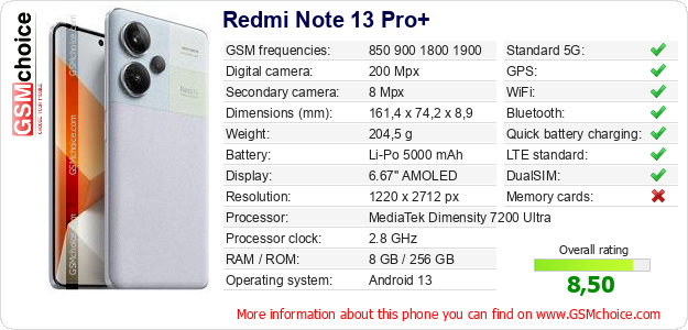 Do you have your website? Do you want to insert information about basic phone data of Redmi Note 13 Pro+ somewhere? It is very easy. You can download the picture, or copy and paste the code below on the page:Pasting this code will display the following image: