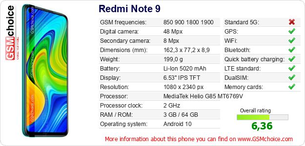 Do you have your website? Do you want to insert information about basic phone data of Redmi Note 9 somewhere? It is very easy. You can download the picture, or copy and paste the code below on the page:Pasting this code will display the following image: