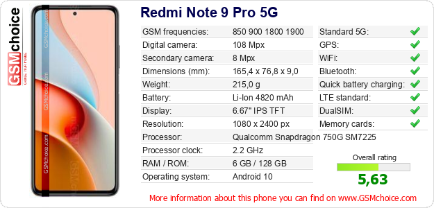 Do you have your website? Do you want to insert information about basic phone data of Redmi Note 9 Pro 5G somewhere? It is very easy. You can download the picture, or copy and paste the code below on the page:Pasting this code will display the following image: