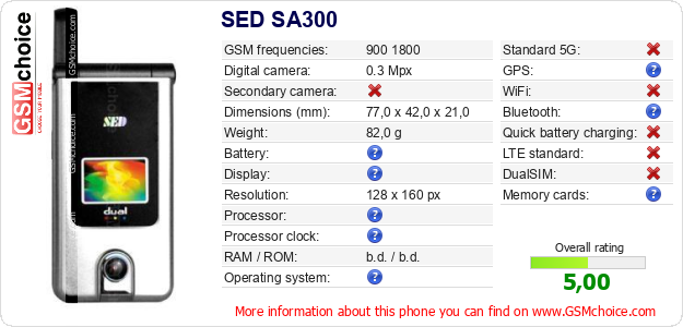 Do you have your website? Do you want to insert information about basic phone data of SED SA300 somewhere? It is very easy. You can download the picture, or copy and paste the code below on the page:Pasting this code will display the following image: