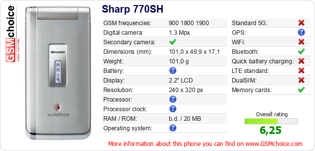 Do you have your website? Do you want to insert information about basic phone data of Sharp 770SH somewhere? It is very easy. You can download the picture, or copy and paste the code below on the page:Pasting this code will display the following image:
