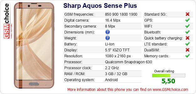 Do you have your website? Do you want to insert information about basic phone data of Sharp Aquos Sense Plus somewhere? It is very easy. You can download the picture, or copy and paste the code below on the page:Pasting this code will display the following image: