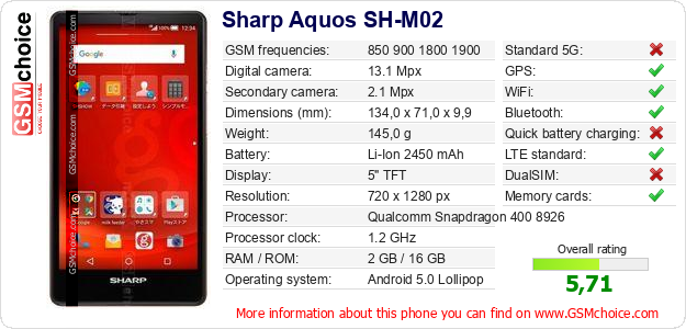 Do you have your website? Do you want to insert information about basic phone data of Sharp Aquos SH-M02 somewhere? It is very easy. You can download the picture, or copy and paste the code below on the page:Pasting this code will display the following image: