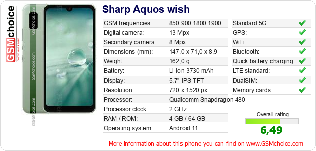 Do you have your website? Do you want to insert information about basic phone data of Sharp Aquos wish somewhere? It is very easy. You can download the picture, or copy and paste the code below on the page:Pasting this code will display the following image: