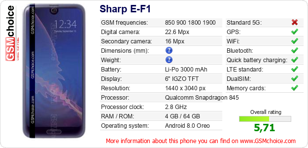 Do you have your website? Do you want to insert information about basic phone data of Sharp E-F1 somewhere? It is very easy. You can download the picture, or copy and paste the code below on the page:Pasting this code will display the following image:
