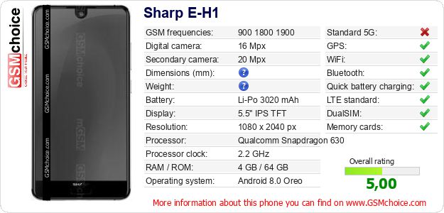 Do you have your website? Do you want to insert information about basic phone data of Sharp E-H1 somewhere? It is very easy. You can download the picture, or copy and paste the code below on the page:Pasting this code will display the following image: