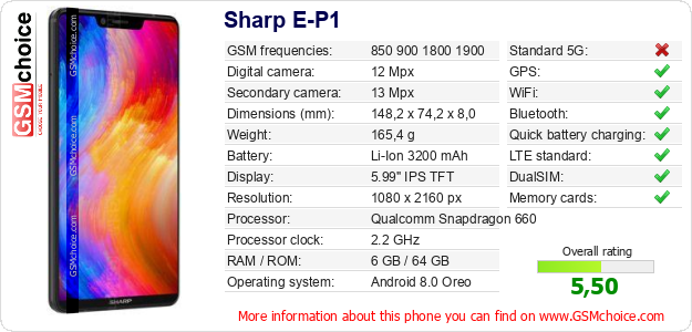 Do you have your website? Do you want to insert information about basic phone data of Sharp E-P1 somewhere? It is very easy. You can download the picture, or copy and paste the code below on the page:Pasting this code will display the following image: