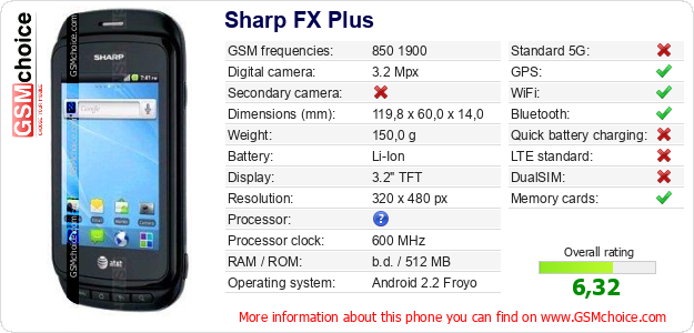 Do you have your website? Do you want to insert information about basic phone data of Sharp FX Plus somewhere? It is very easy. You can download the picture, or copy and paste the code below on the page:Pasting this code will display the following image: