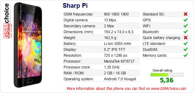 Do you have your website? Do you want to insert information about basic phone data of Sharp Pi somewhere? It is very easy. You can download the picture, or copy and paste the code below on the page:Pasting this code will display the following image:
