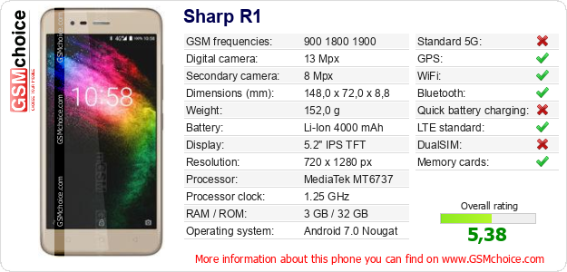 Do you have your website? Do you want to insert information about basic phone data of Sharp R1 somewhere? It is very easy. You can download the picture, or copy and paste the code below on the page:Pasting this code will display the following image:
